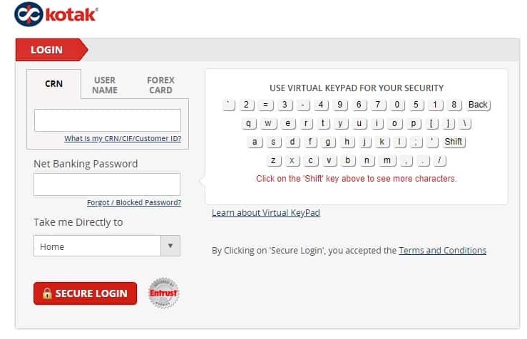 Kotak Mahindra Online Banking Login Page