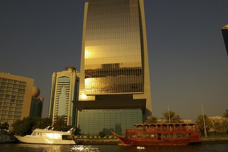 Boats in front of National Bank of Dubai and Dubai Chamber ...
