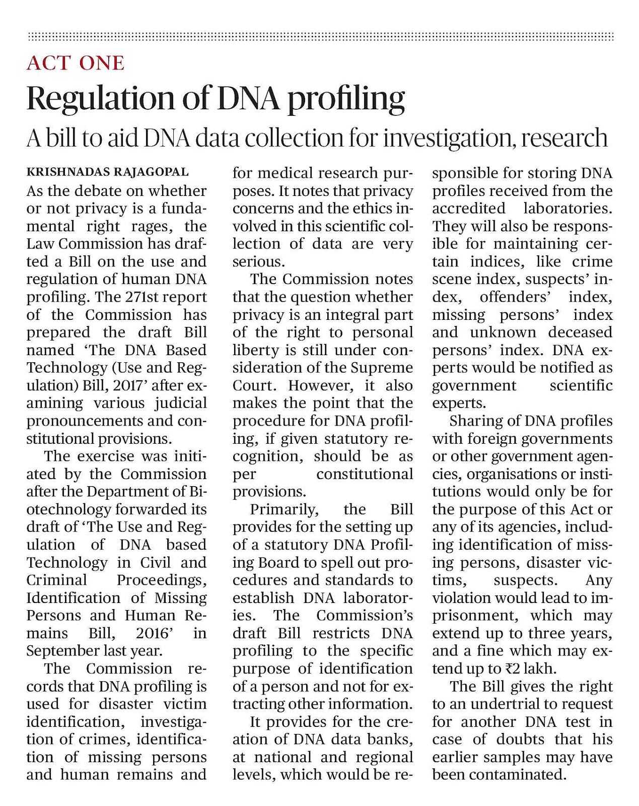 DNA technology( use and applications) regulation bill 2018 ...