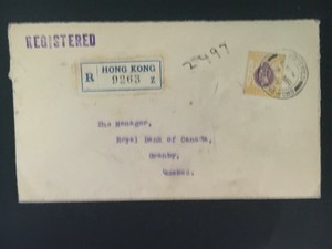 1936 Hong Kong Registered Cover to Granby Royal Bank of ...