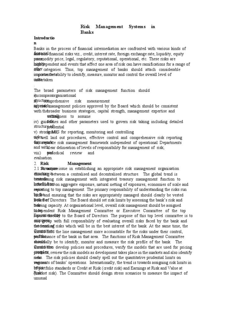 Market Risk Management In Banks. The most common and debated form of interest rate risk originates from the time differences of Nontrading market risk arises from market movements, primarily outside the activities of our trading units, in our banking book and from off-balance sheet items. The Basel Committee on Banking Supervision defines banks' market risk as "the risk of losses in on- and off-balance sheet risk positions arising from movements in market prices.".
